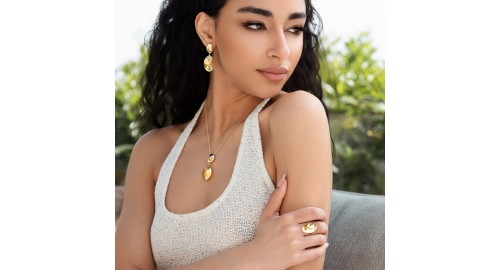 La collana foglioline Venice è disponibile nella colorazione oro in 2 varianti colore pietra. La lunghezza totale è di 41cm + 5cm di prolungamento.