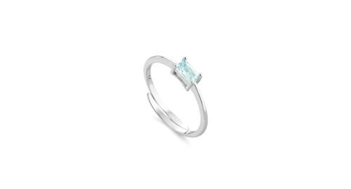 L'Anello goccia azzurra contrariè - Emme è costituito da una luminosa pietra azzurra e da un pavè di zirconcini.