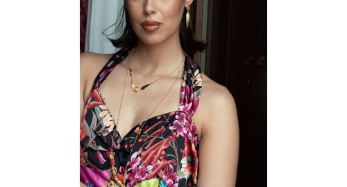 La Collana Sampietrini Itaca Colors è disponibile nella rifinitura in oro brunito e in 4 colorazioni. La lunghezza totale è di 43cm e il pendente è di 1,8cm