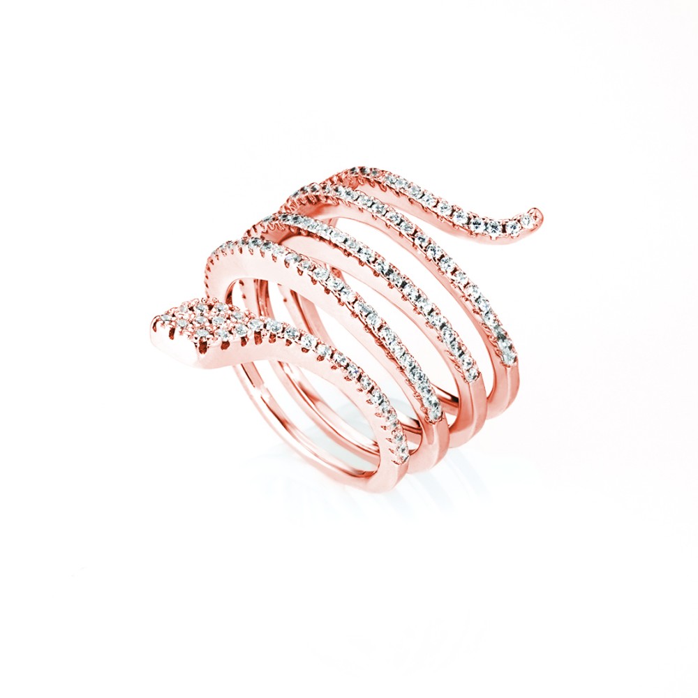 L'Anello serpente double rosè - Emme in argento 925 con pavè di pietre bianche. Misure disponibili 12 - 14- 16 - 18