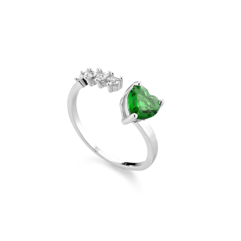 L'Anello cuore style - Emme in argento 925 è costituito da luminose pietre colorate e zirconi bianchi.