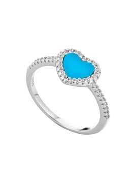 L'Anello cuore azzurro - Emme è costituito da un cuore smaltato di azzurro e luminosi zirconcini perimetrali.