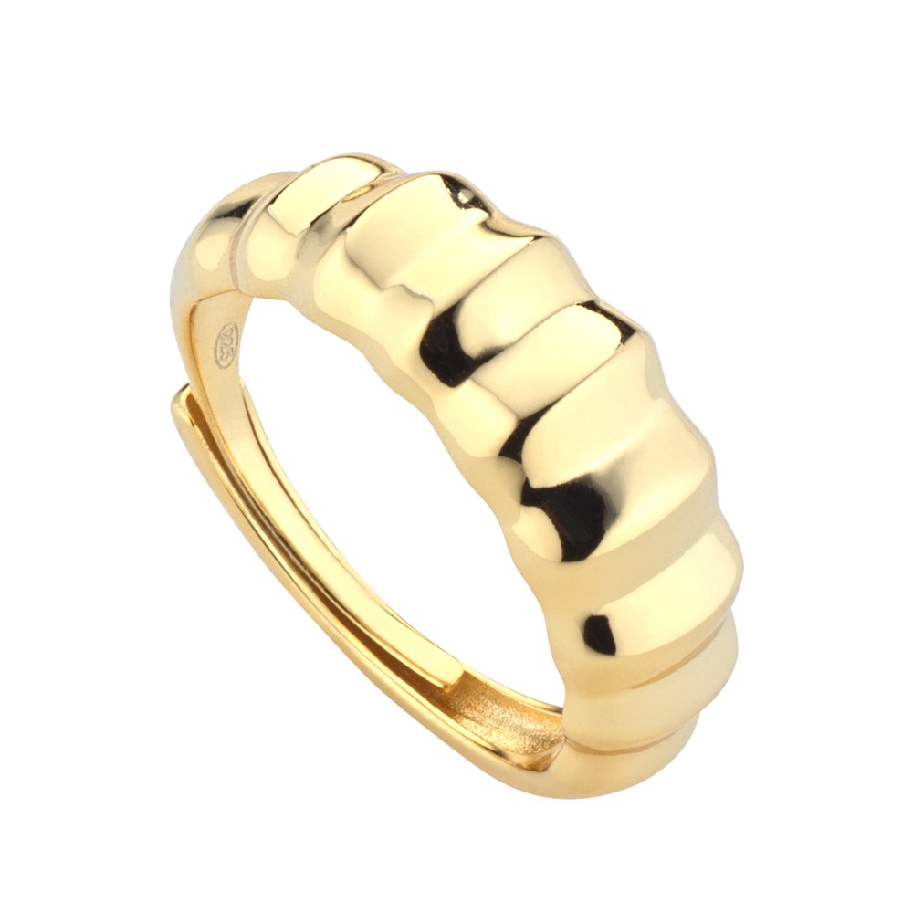L'anello onde Venice è disponibile in argento dorato ed è regolabile, pertanto adatto a tutte le misure.