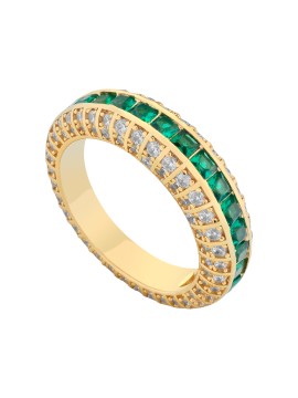 L' Anello superglam - Venice è realizzato in argento 925 con base dorata impreziosita da pietre verdi e un perimetro di zirconi bianchi.