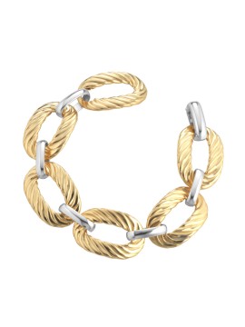 Il Bracciale cerchi bicolor - 5TH AVENUE è costituito da maglie a forma cerchi in argento 925 dorato lucido con giunzioni in argento bianco.
