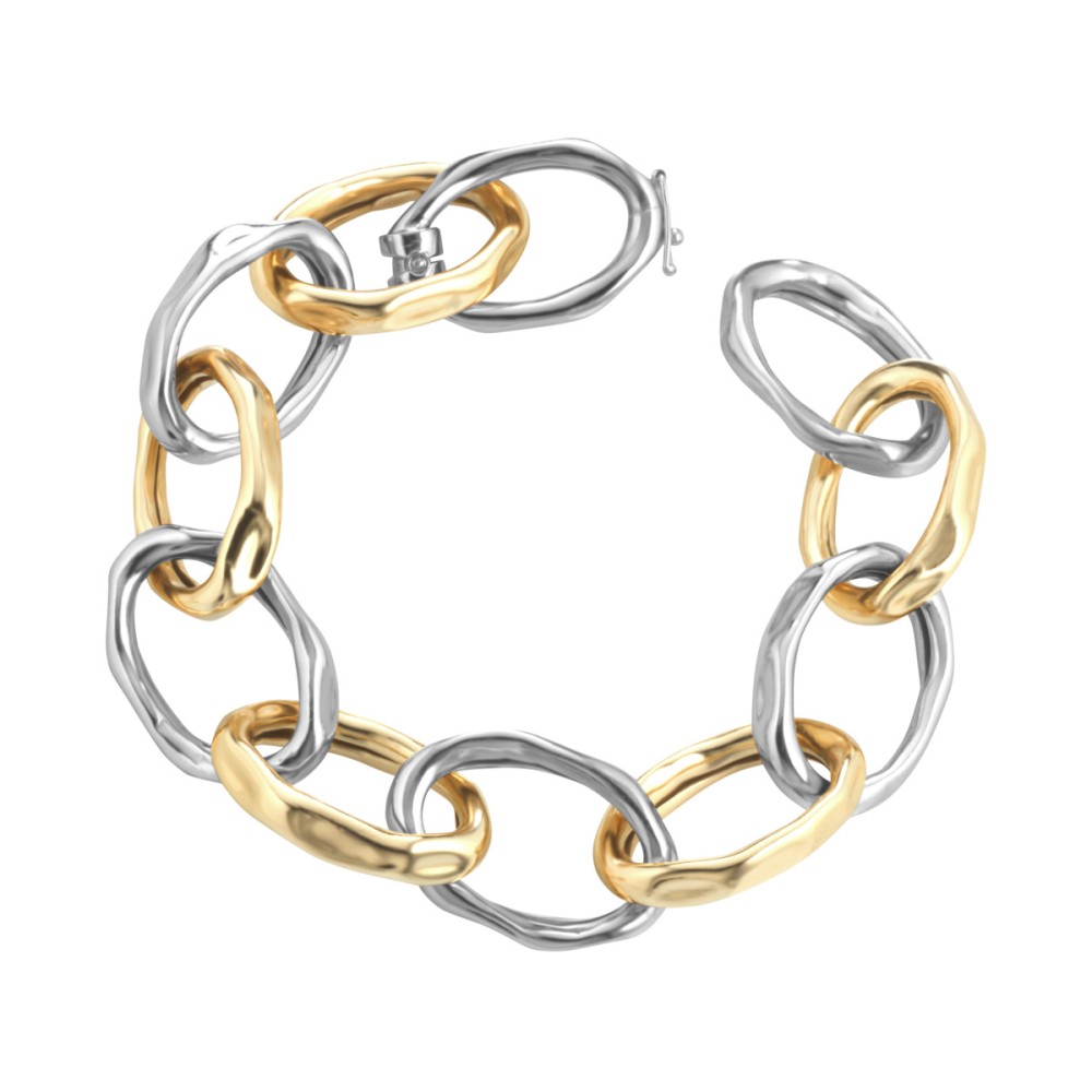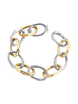 Il Bracciale cerchi bicolor - 5TH AVENUE è costituito da maglie a forma cerchi in argento 925 dorato lucido con giunzioni in argento bianco.