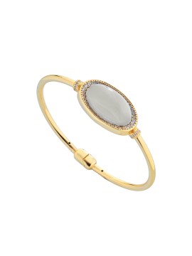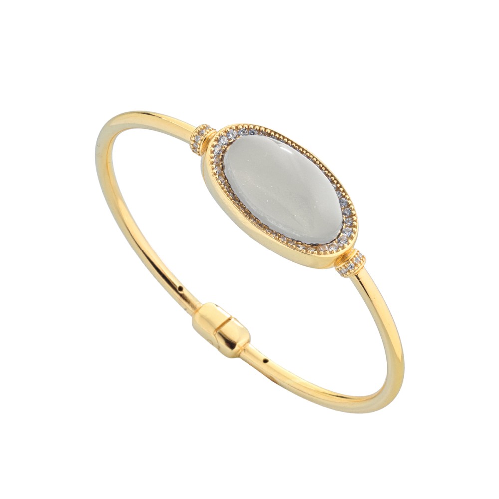 Il Bracciale gloria - Atena è disponibile nella rifinitura in argento dorato lucido ed è costituito dai toni del lapis e della madreperla.