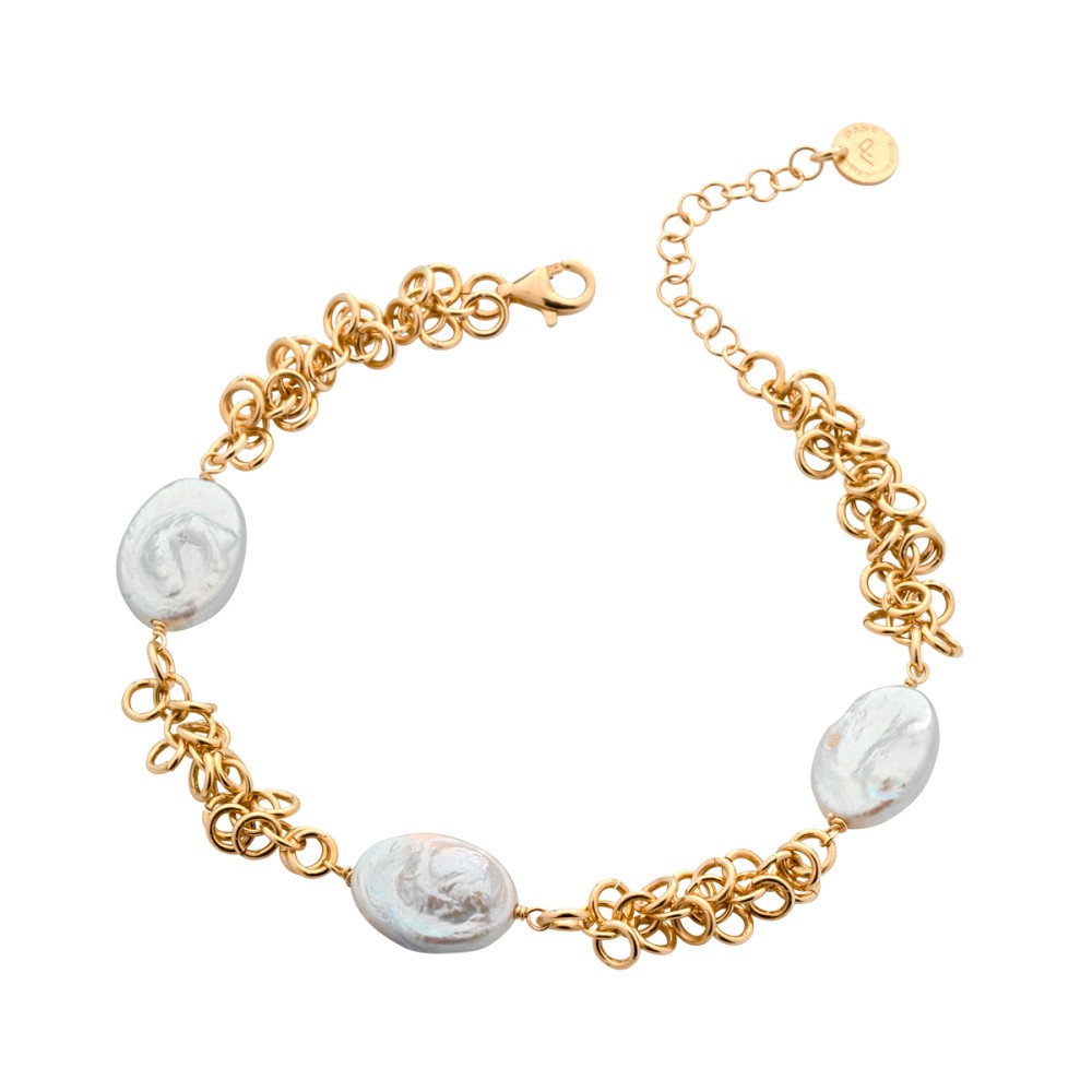 Il Bracciale gocce flat minimal - Bonton è costituito da una catena in argento dorato e caratterizzato da un alternarsi di perle naturali flat.