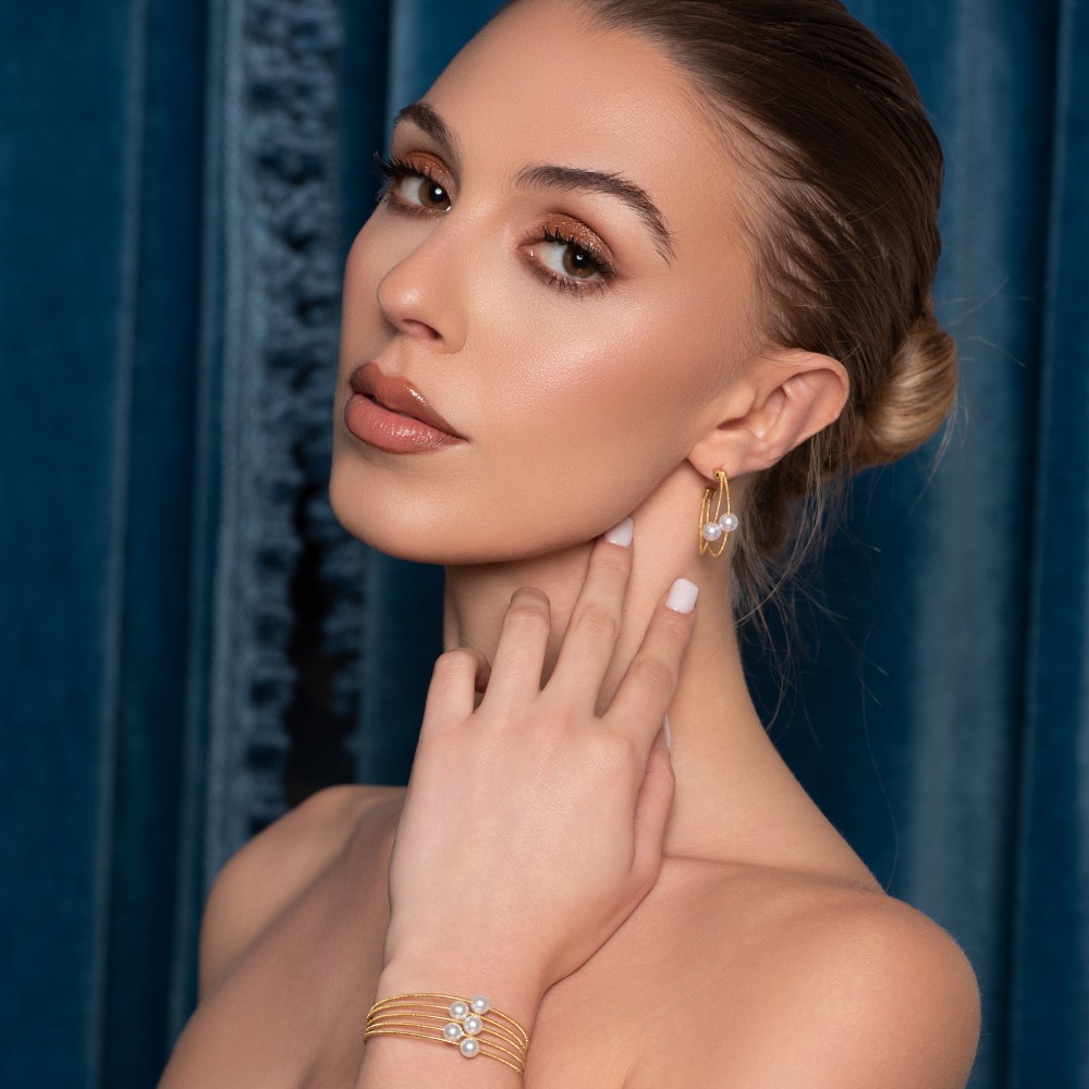 Il Bracciale charm - Bonton è costituito da un multicerchio in argento 925 dorato impreziosito da perle naturali.