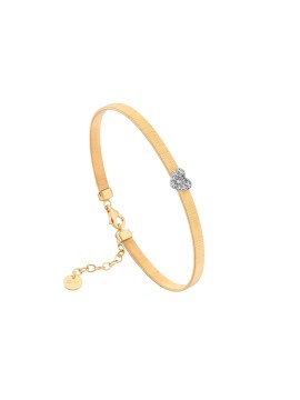 Il Bracciale silk cuore - Cashmere è realizzato in argento 925 dorato con una speciale lavorazione per un effetto setoso, ed impreziosito da un cuore pavè bianco.
