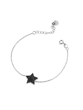 Il Bracciale cuore pavè nero - Emme è in argento bianco con centrale a forma di cuore pavè. Lunghezza totale 17cm+3.5 cm di extension per personalizzarne la lunghezza.