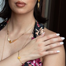 Il bracciale Stone Itaca Colors è disponibile nella colorazione giallo oro con pietre sfaccettate. Lunghezza 18cm+2,5cm di prolungamento.