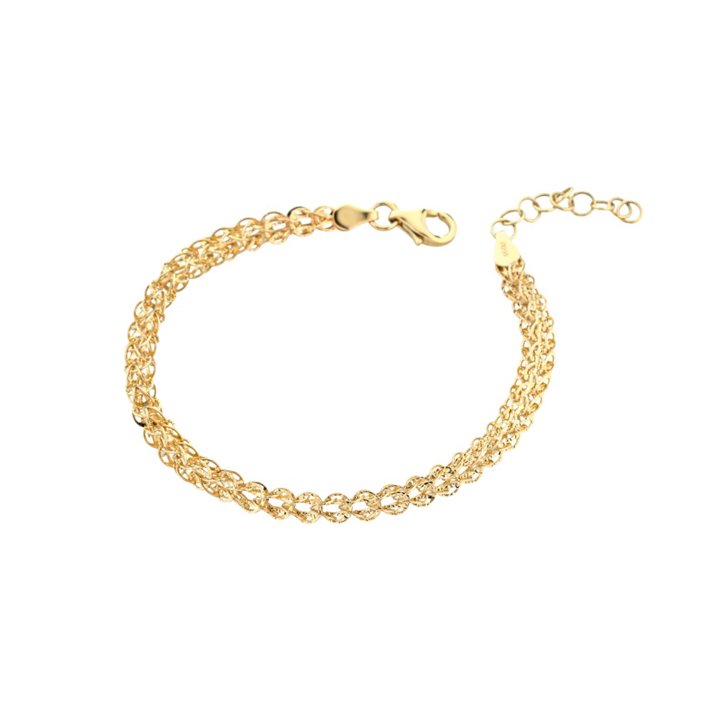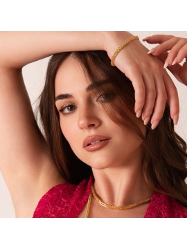 Il Bracciale catena - Lux è disponibile nella colorazione giallo oro con un effetto martellato. Lunghezza 18cm + 3cm di prolungamento per personalizzarne la vestibilità.