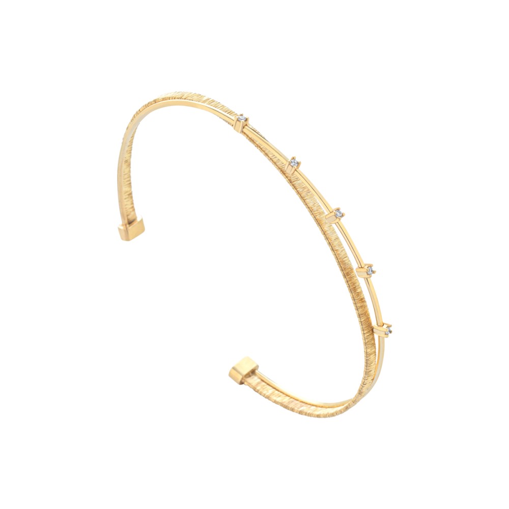 Il bracciale multifilo mini zirconato - Twist è disponibile in colore argento giallo e ha una misura del diametro interno di circa 6,5cm.