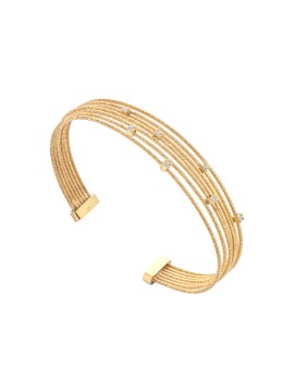 Il bracciale multifilo mini zirconato - Twist è disponibile in colore argento giallo e ha una misura del diametro interno di circa 6,5cm.