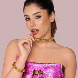 La Collana catena compatta - 5TH AVENUE è costituita da maglie a forma di anelli bombati in argento 925 dorato.