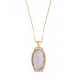 La Collana gloria - Atena è disponibile nella rifinitura in argento dorato lucido ed è costituita dai toni del lapis e della madreperla.