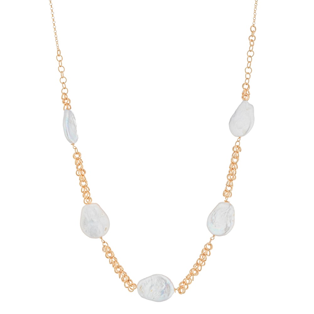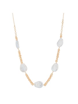 La Collana gocce flat - Bonton è costituita da una catena in argento dorato e caratterizzata da un alternarsi di perle naturali flat.