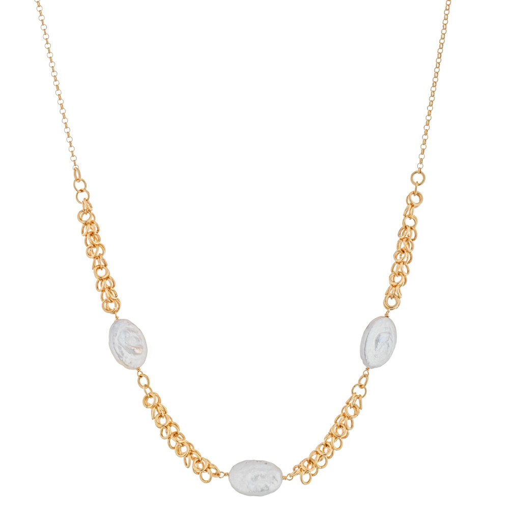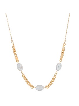 La Collana gocce flat minimal - Bonton è costituita da una catena in argento dorato e caratterizzata da un alternarsi di perle naturali flat.