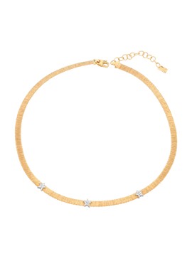 La Collana silk stella - Cashmere è realizzata in argento 925 dorato con una speciale lavorazione per un effetto setoso, ed impreziosita da 3stelle pavè bianche.