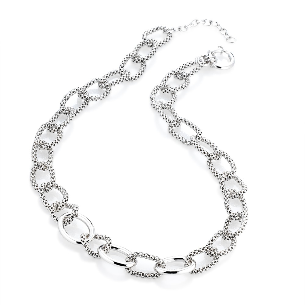 La Collana catena soft - Classique è realizzata con la tecnica della canna vuota. Ad una doppia maglia a catena vengono applicate delle maglie ovali lucide di congiunzione.