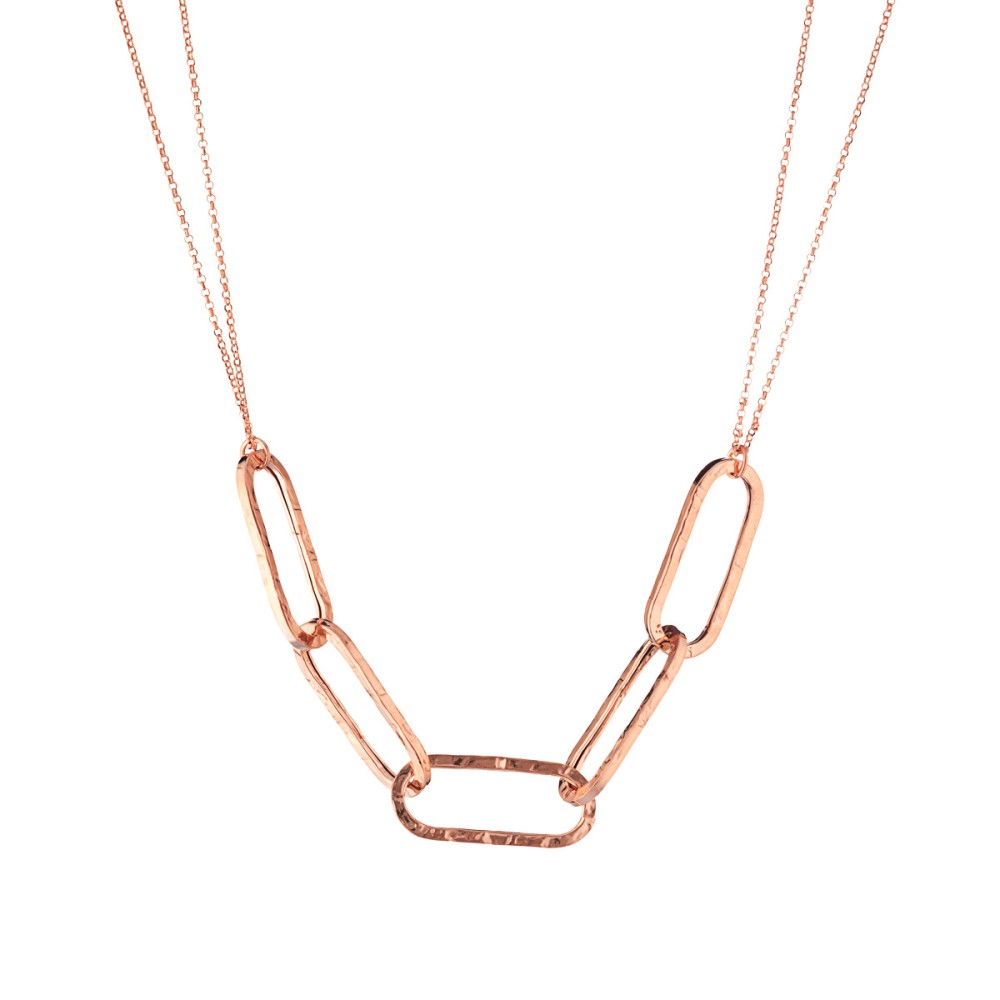 La Collana catena squadrata longuette - Classique è disponibile nella colorazione oro, bianco e rosè con un effetto martellato.