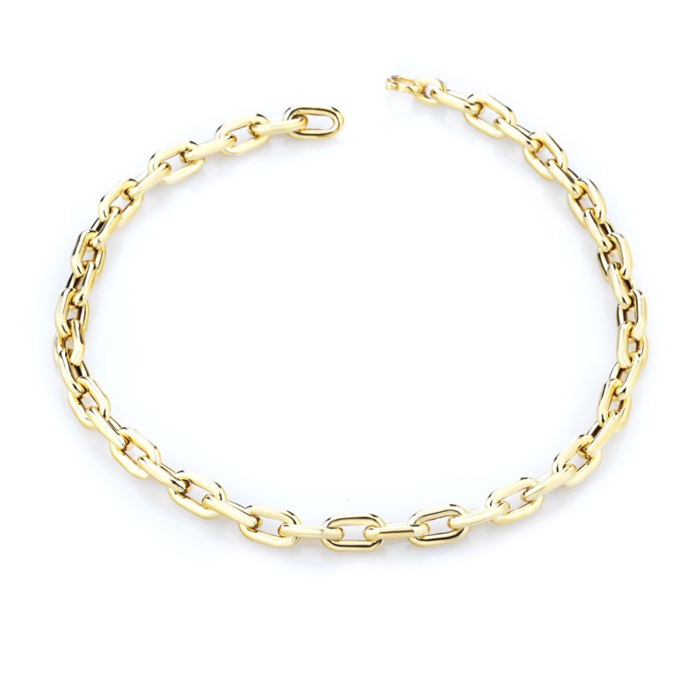 La Collana catena ovale rolò - Classique è disponibile nella colorazione oro, bianco, nero e rosè. E' realizzata con la tecnica della canna vuota.
