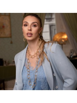 La Collana dea antica - Diva è disponibile in argento dorato e ha una lunghezza di 31cm circa più 10cm di extension.