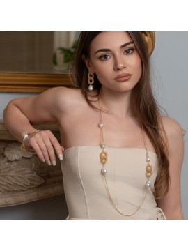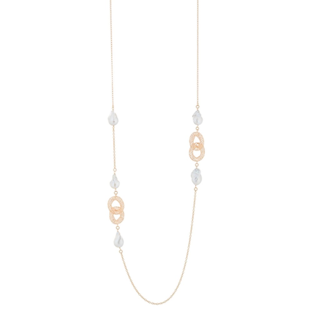 La Collana dea di mare longuette - Diva è realizzata con maglie groumette ricamate e perle barocche.