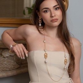 La Collana dea antica - Diva è disponibile in argento dorato e ha una lunghezza di 31cm circa più 10cm di extension.