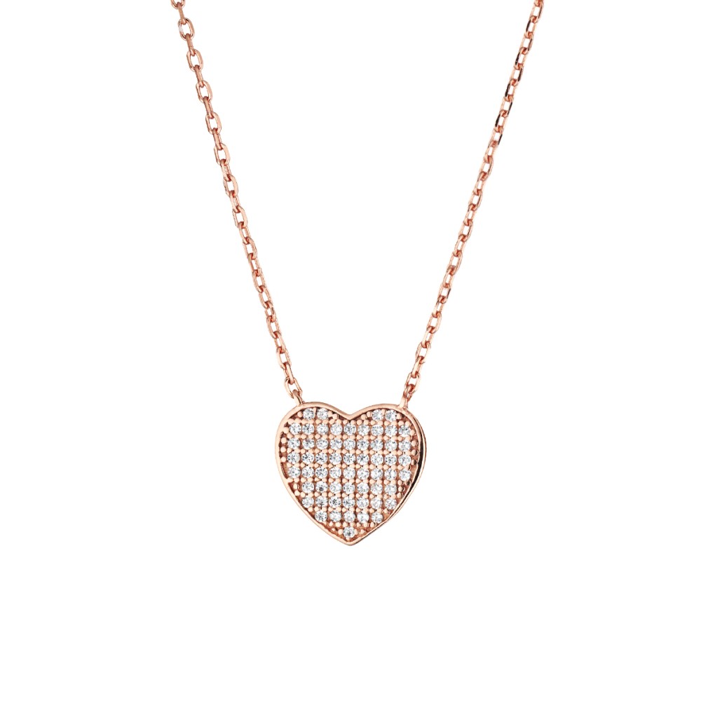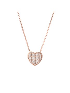 La Collana cuore pavè - Emme è in argento 925 rosè con pendente cuore in pavè. Lunghezza totale 40cm+3 cm di extension per personalizzarne la lunghezza.