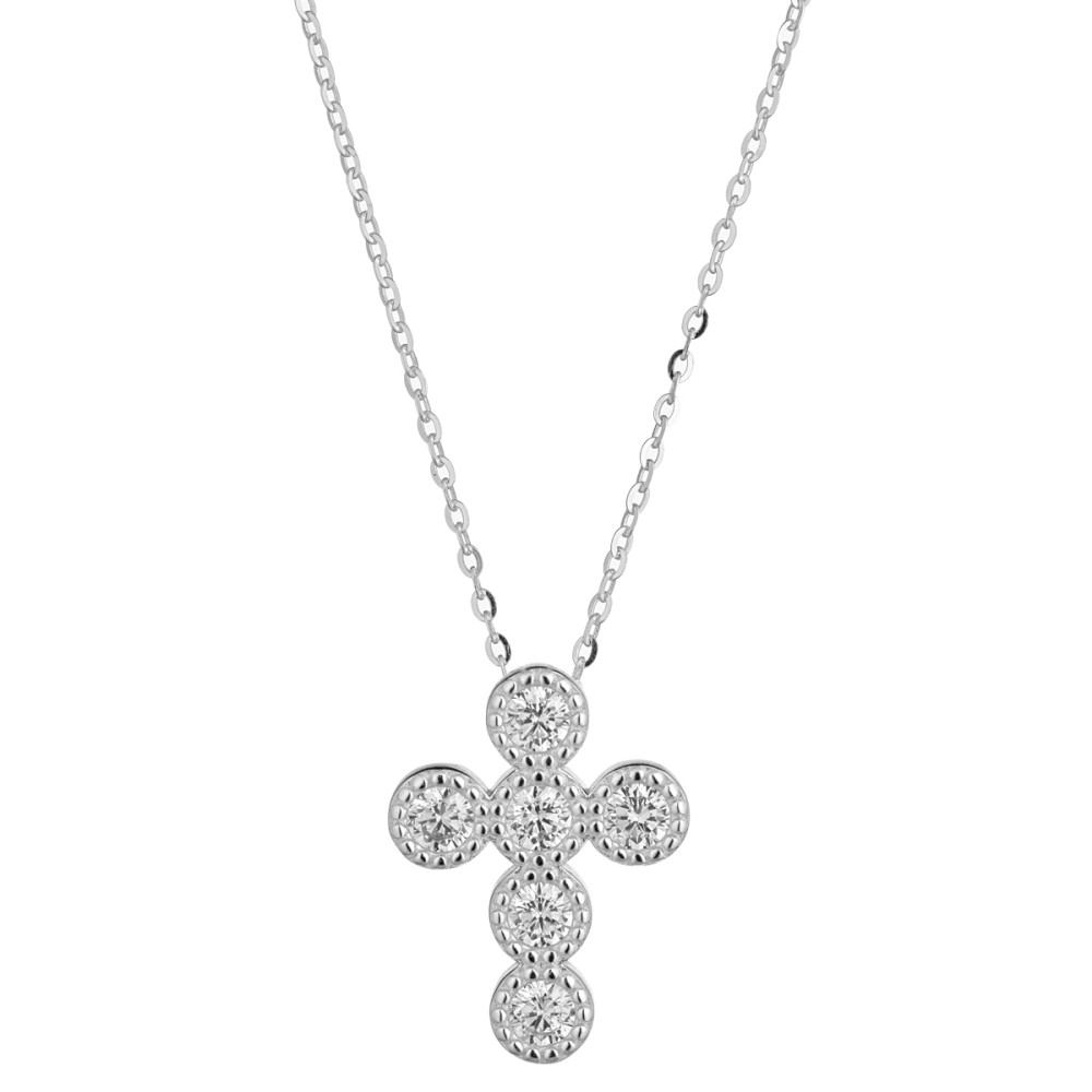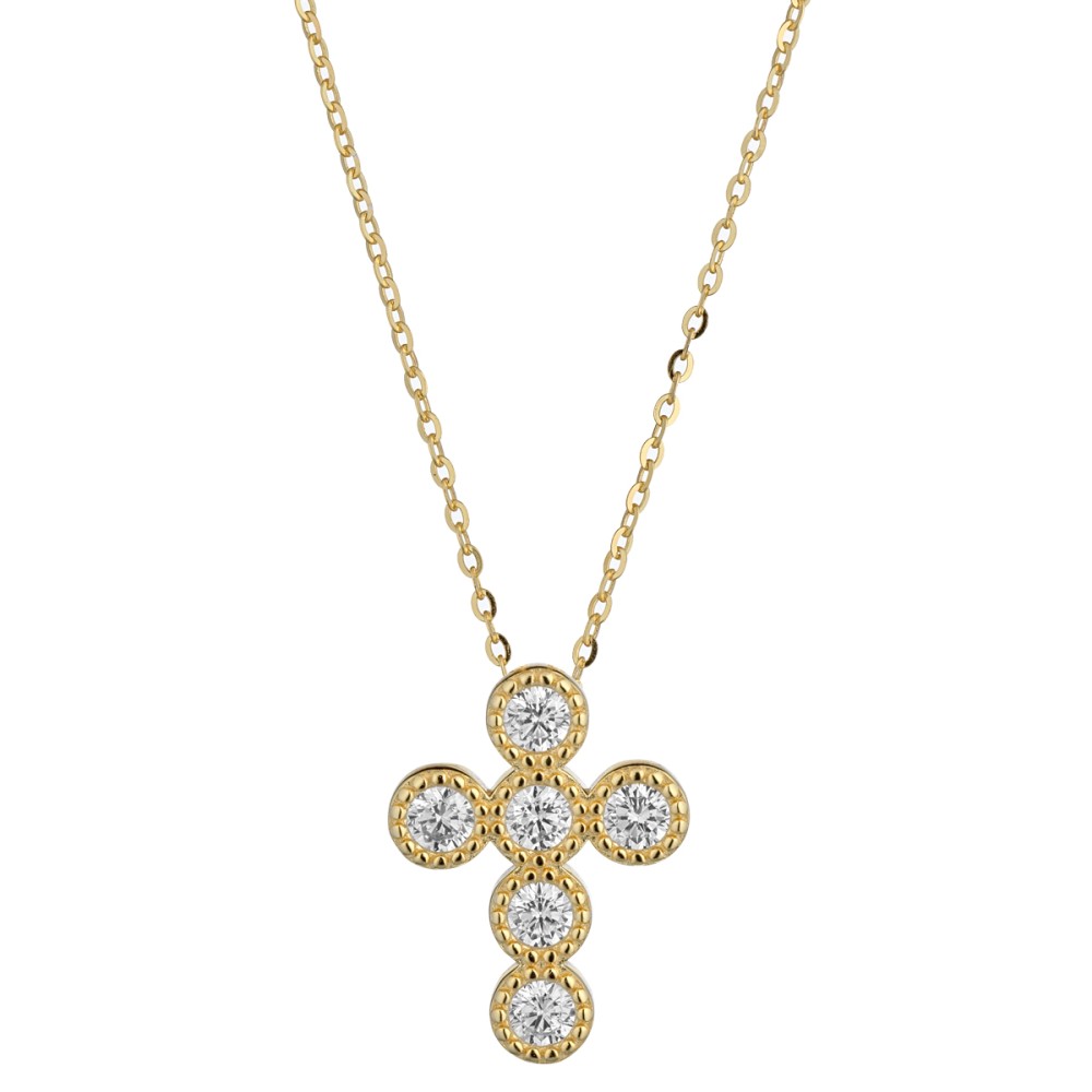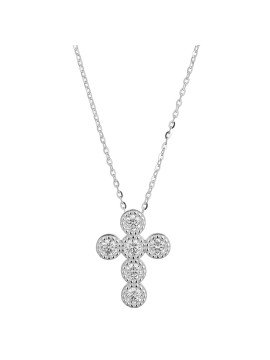 La Collana croce - Emme è in argento 925 e disponibile in argento giallo e argento bianco.