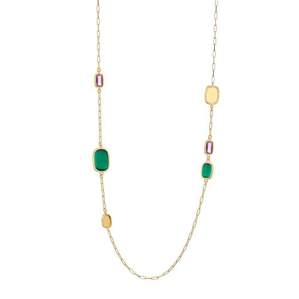 La Collana Stone longuette Itaca Colors è disponibilè nella colorazione giallo oro con pietre sfaccettate. Lunghezza 90cm.