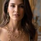 La collana sagome longuette misura 100cm ed è disponibile nelle colorazioni bianco argento e giallo oro.