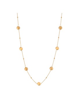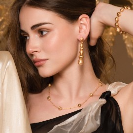 La Collana degradè longuette - Nausica è realizzata in argento 925 dorato con una speciale lavorazione per un effetto sabbiato. Le boule sono montate con un meraviglioso effetto degradè.