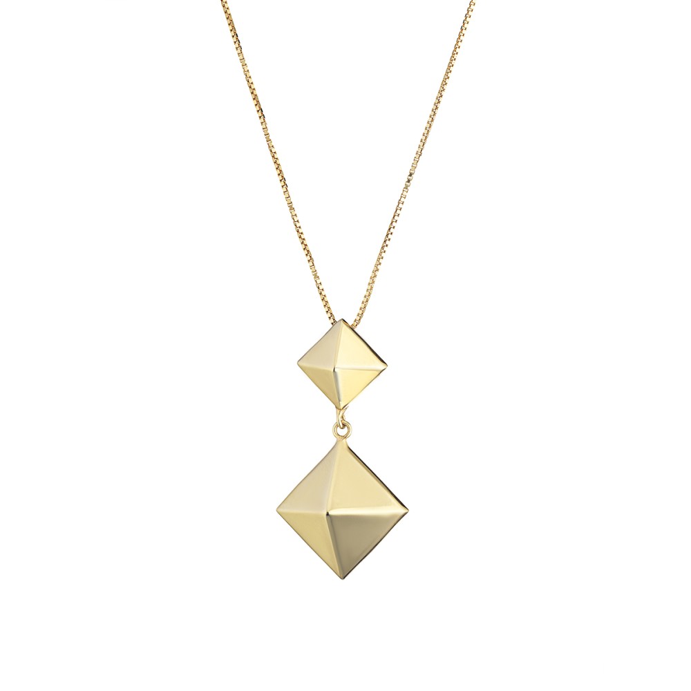 La collana Venice è realizzata in argento 925, con ciondoli a forme squadrate. La lunghezza del ciondolo è 4cm, mentre la lunghezza totale è cm 47+5. Disponibile in argento dorato.