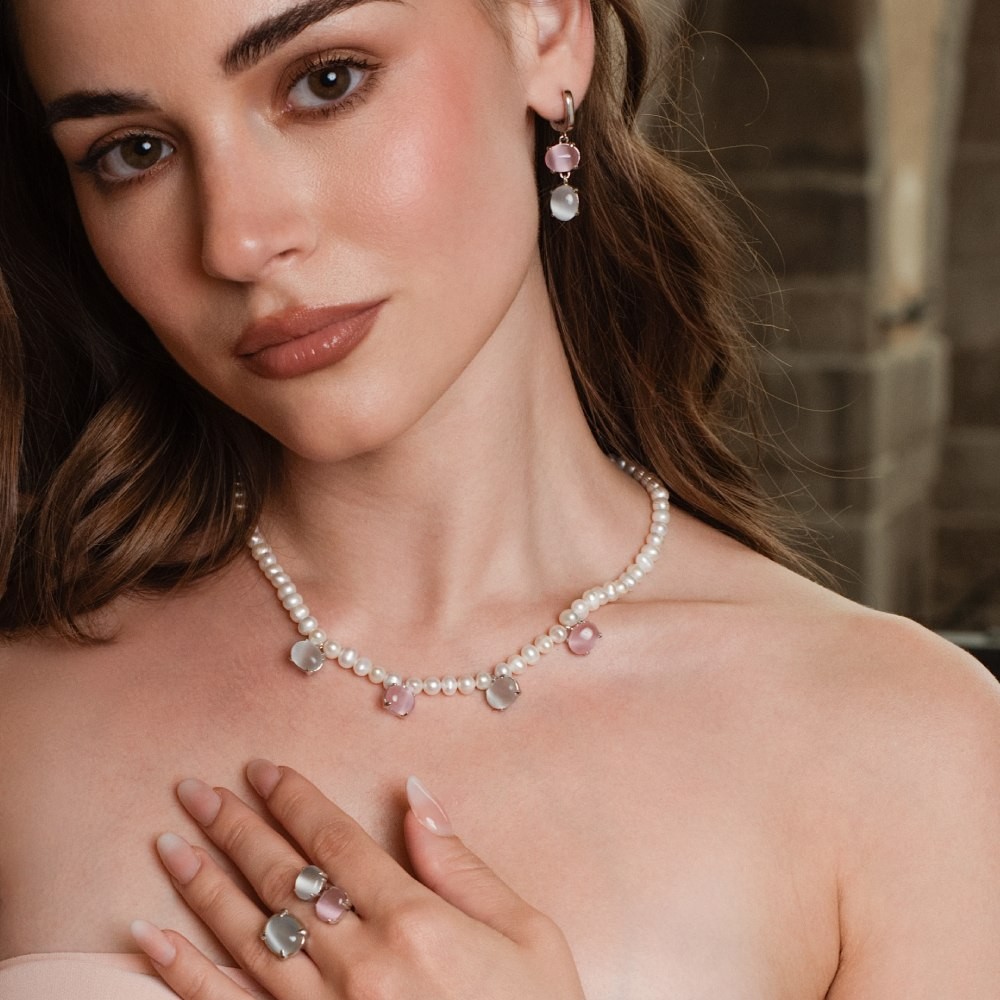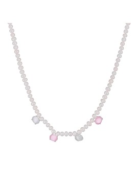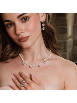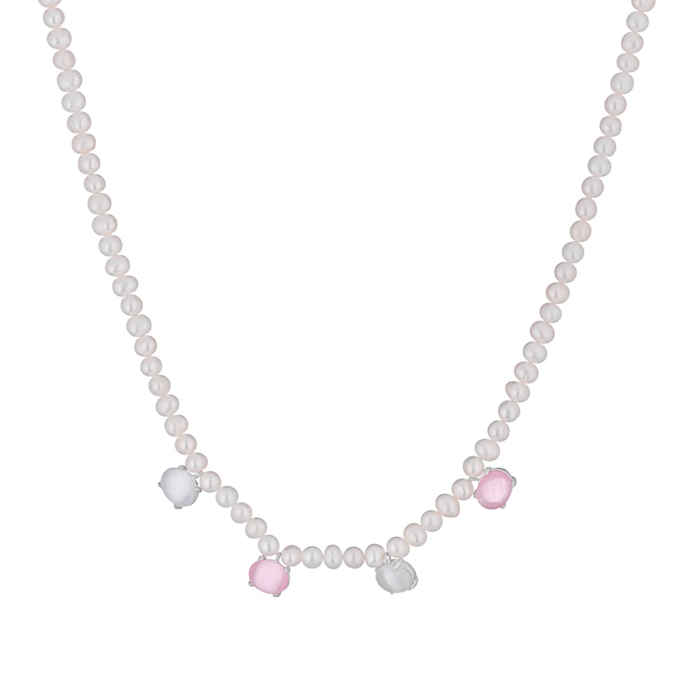 La collana delicate - Venice è disponibile nella colorazione argento bianco e costituita da perle naturali e luminose pietre colorate.