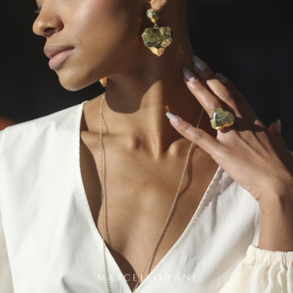 Gli orecchini con cuori Venice sono realizzati in argento 925, elettroformati e martellati con effetto luce. Gli orecchini in argento dorato misurano cm 5,5