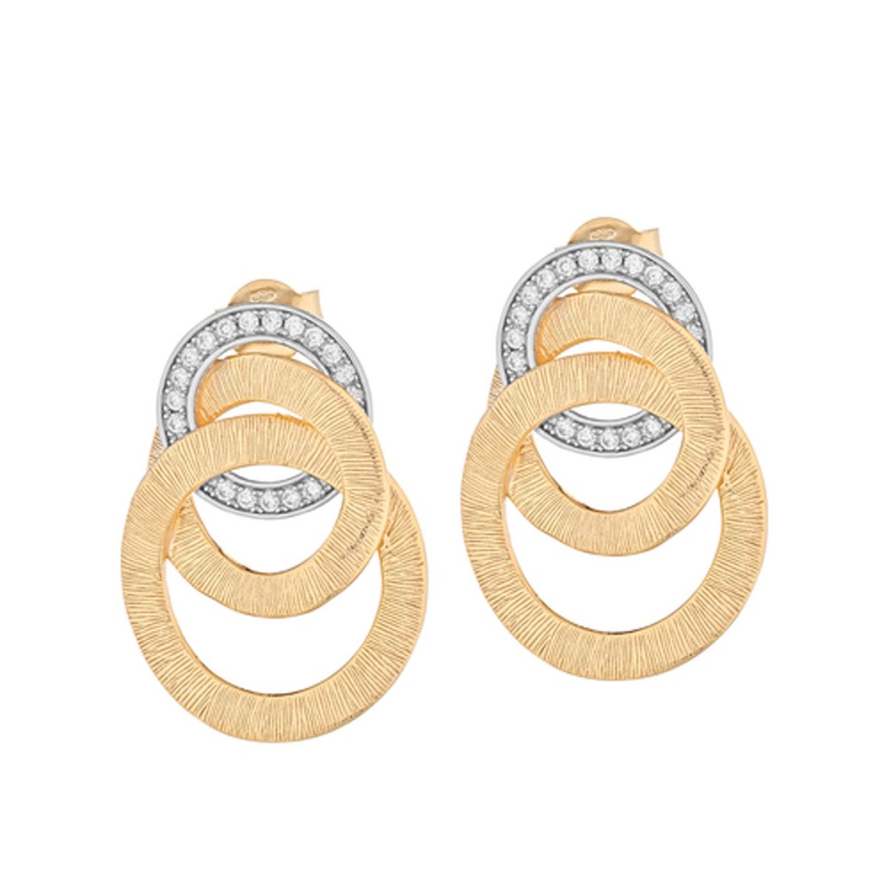 Gli Orecchini pianeti - Andromeda sono costituiti da una base di cerchi concentrici in argento 925 impreziositi da un pavè di pietre bianche.
