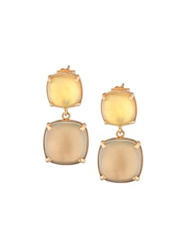 Gli Orecchini petit bouquet - Boho chic sono disponibili nella rifinitura in argento dorato lucido e sono costituiti dai toni del giallo citino e del verde labradorite.
