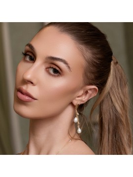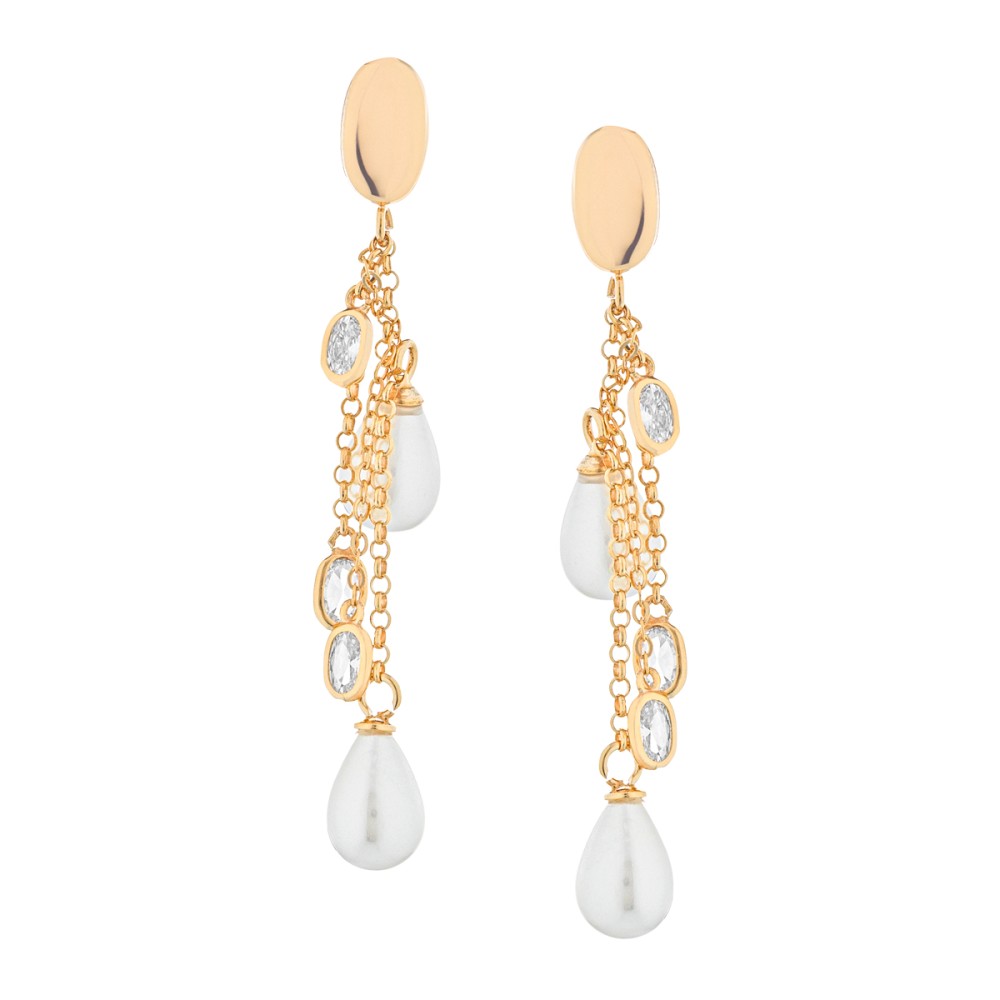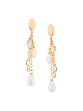 Gli Orecchini goccioline - Bonton sono costituiti da una catena in argento 925 dorato e caratterizzati da un alternarsi di perle naturali e luminose pietre crystal.