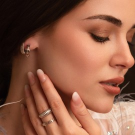 Gli Orecchini catena squadrata - Classique sono disponibili nella colorazione oro, bianco e rosè con un effetto martellato.