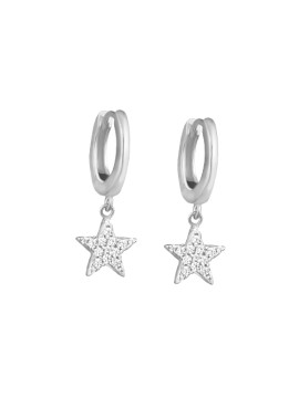 Gli Orecchini stelle pendenti - Emme sono in argento bianco con pavè di pietre bianche.Misura circa 2cm.
