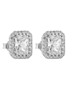 Gli Orecchini rettangolari luxury - Emme sono costituiti da una pietra centrale e da un luminoso perimetro di zirconcini.