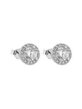 Gli Orecchini punto luce - Emme sono costituiti da una pietra centrale e da un luminoso perimetro di zirconcini.