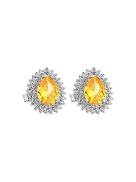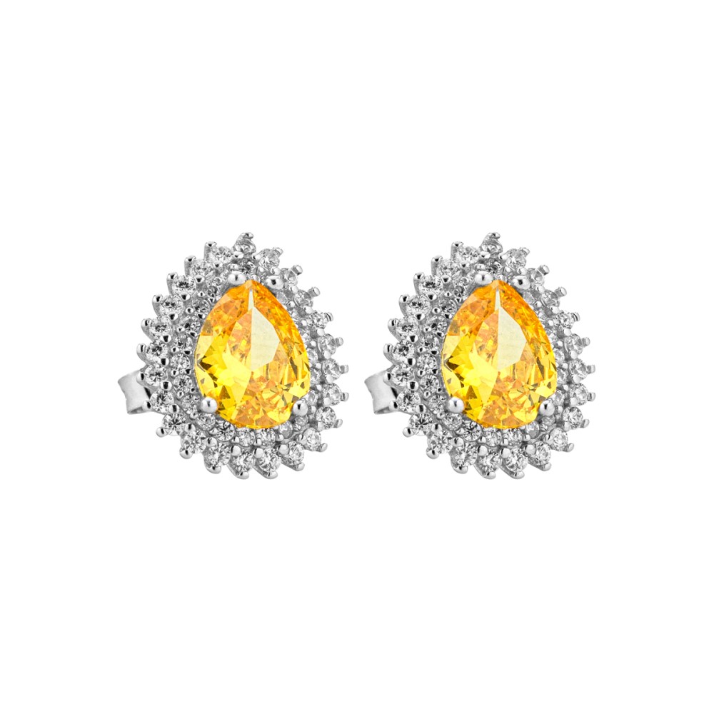 Gli Orecchini goccia golden - Emme sono costituiti da una luminosa pietra gialla impreziosita da zirconi perimetrali.