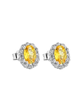 Gli Orecchini ovale golden - Emme sono costituiti da una luminosa pietra gialla impreziosita da zirconi perimetrali.