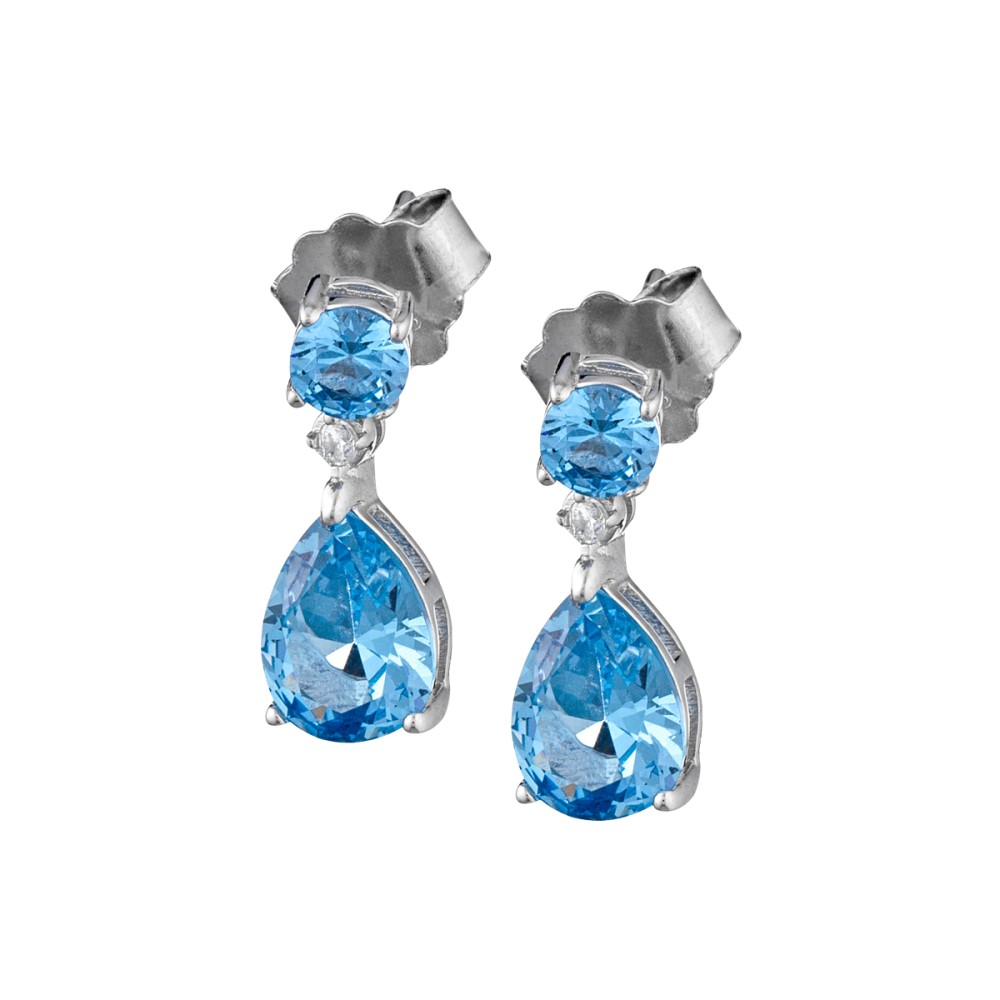 Gli Orecchini goccia azzurra - Emme sono costituiti da una luminosa pietra azzurra impreziosita da zirconi perimetrali.