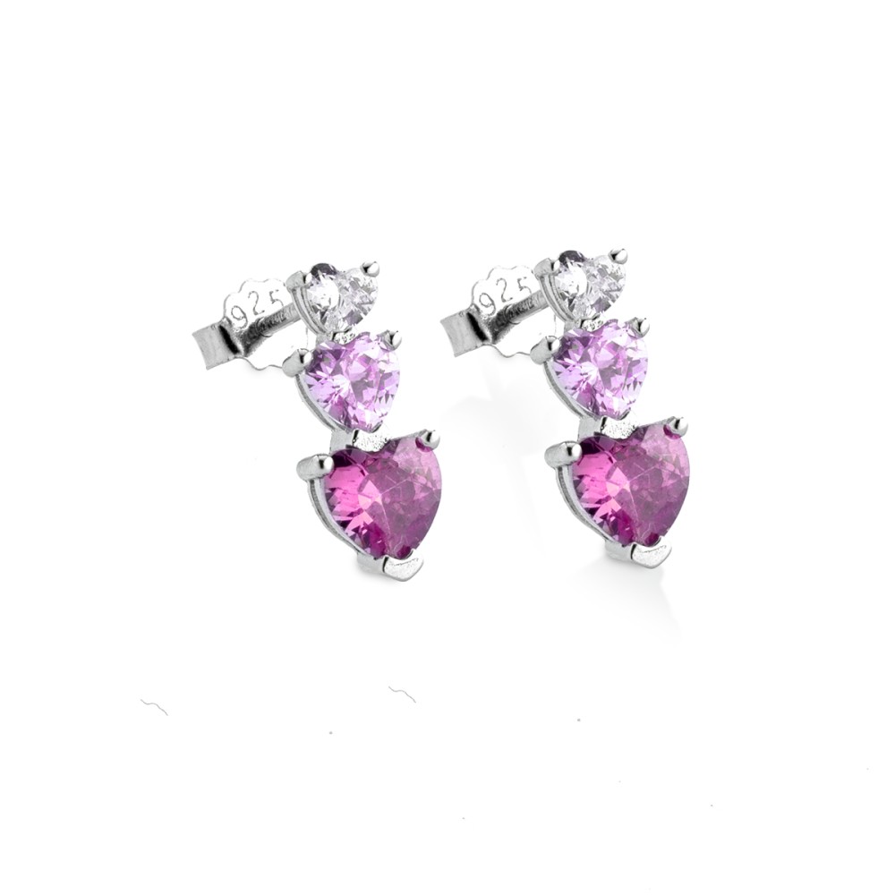 Gli Orecchini tris di cuori - Emme sono in argento 925 bianco e disponibili in 3 colorazioni differenti.
