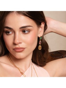 Gli Orecchini Double Stone Itaca Colors sono disponibili nella colorazione giallo oro e in 4 varianti colore di pietra.